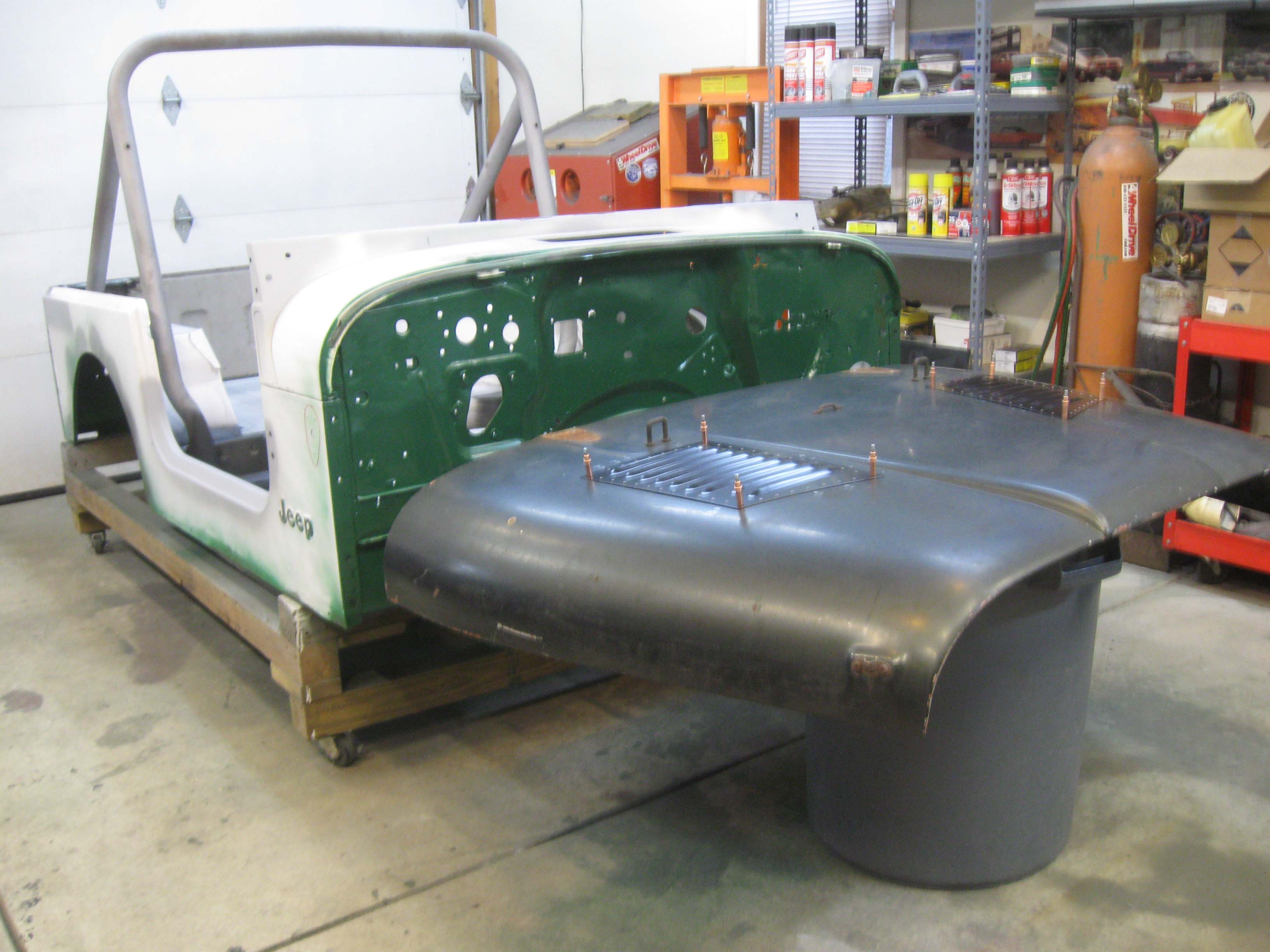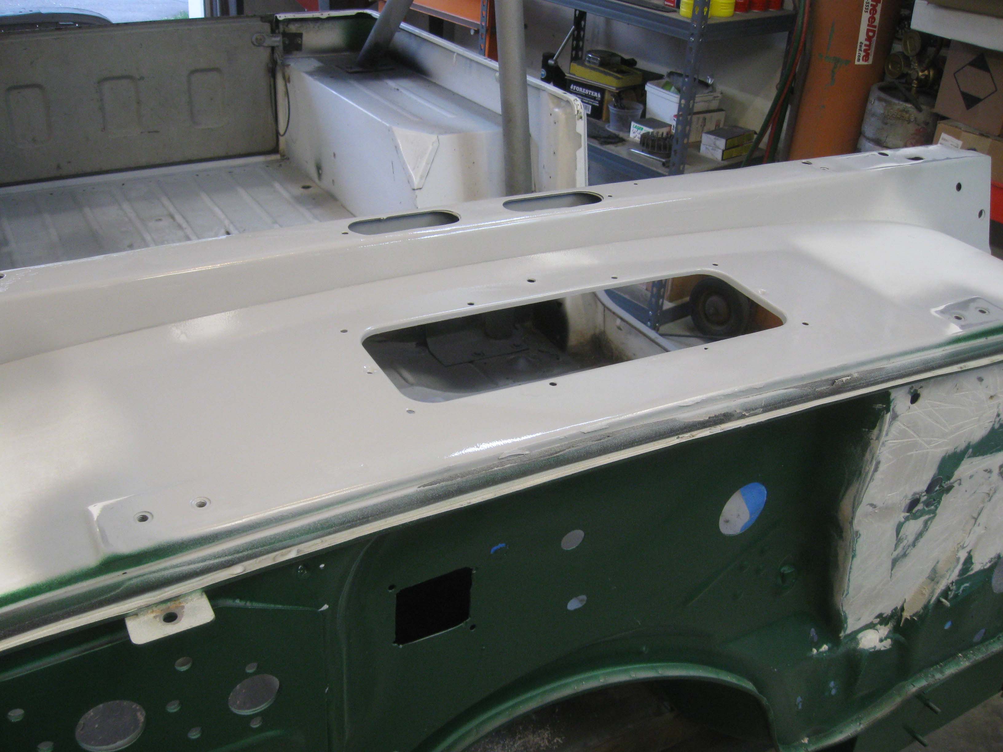 here on out. I started on the hood and bolted back in the feet of the roll bar after treating them... also