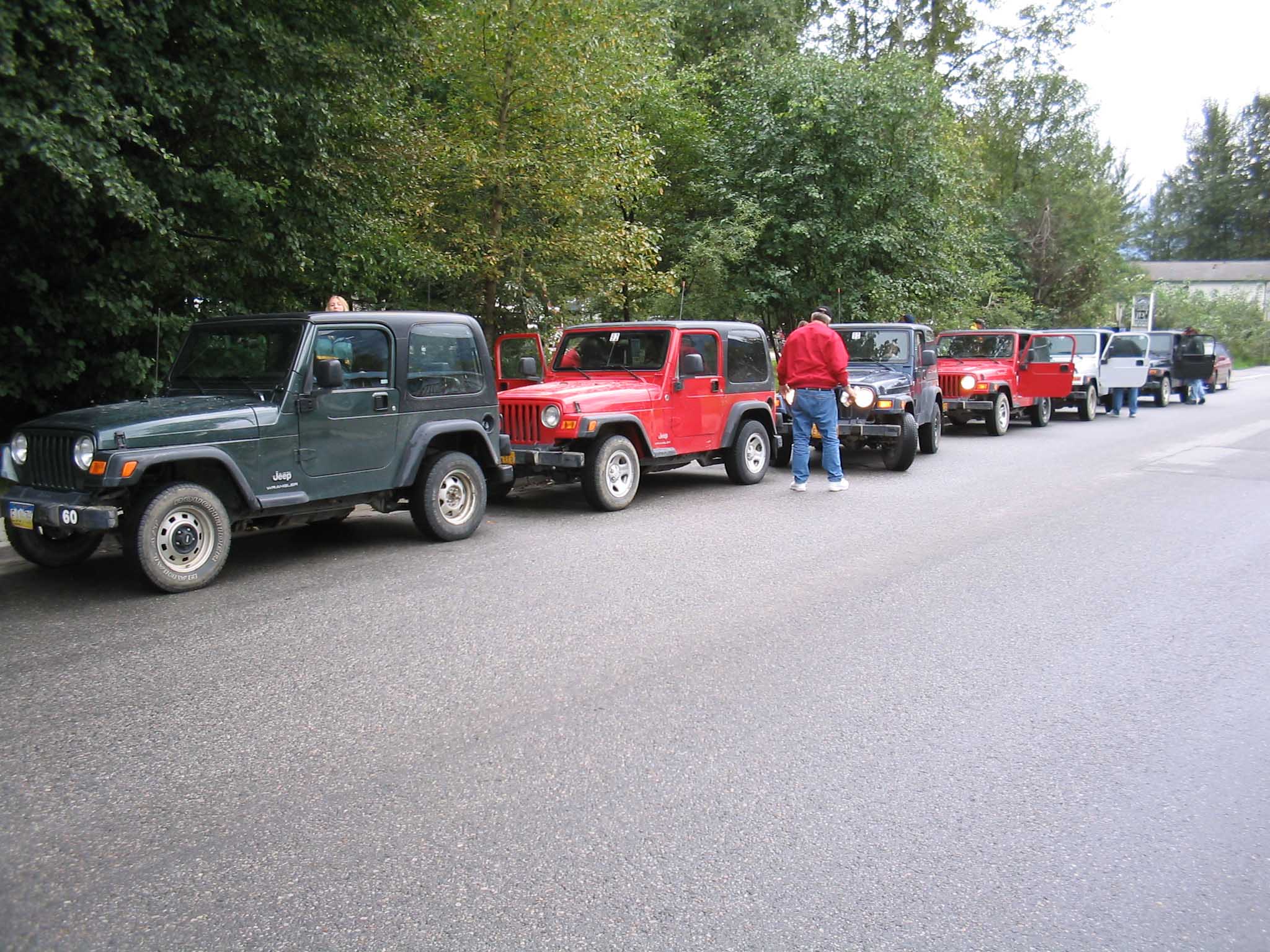 All the Jeeps stopping at the bathroom.