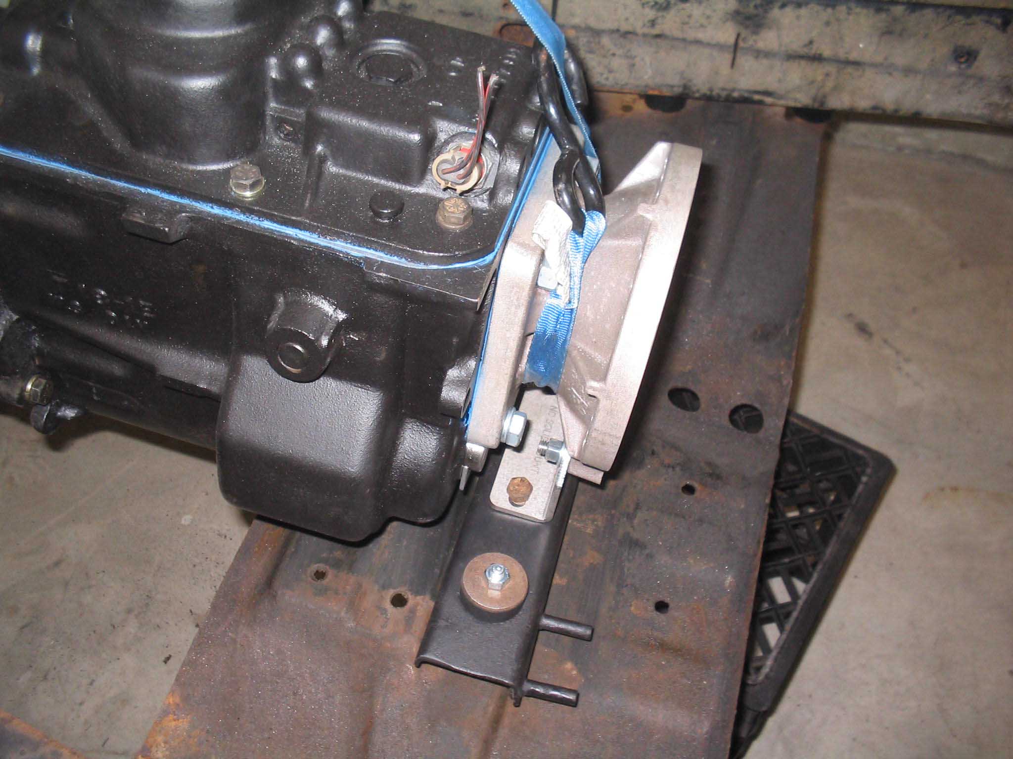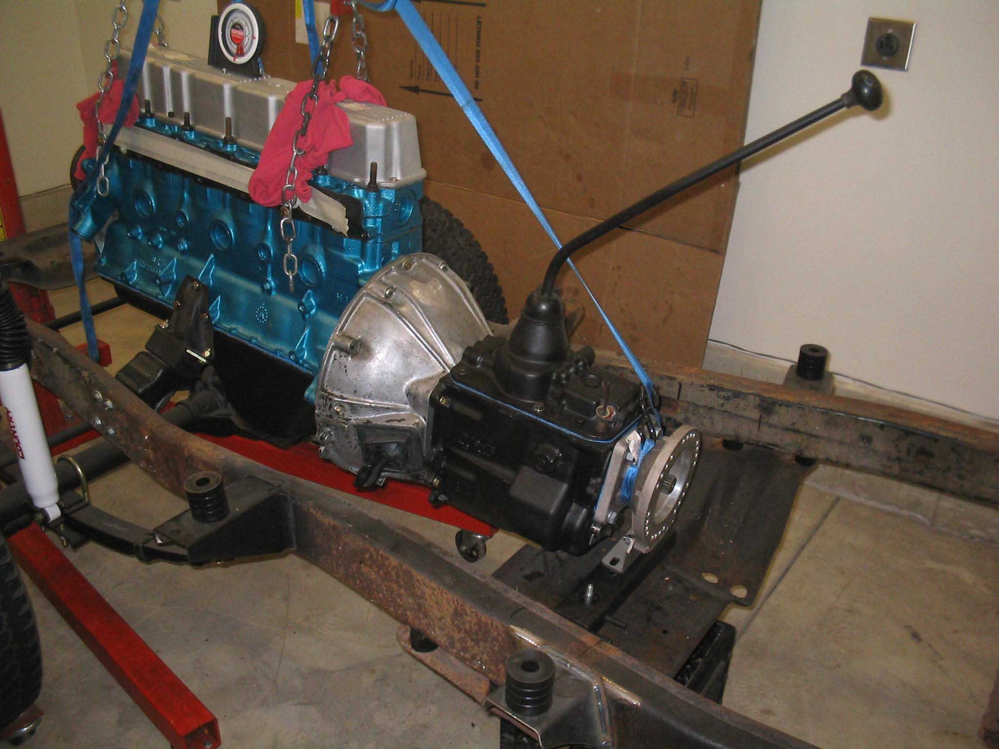 town getting the bell housing, throwout bearing and transmission all lined up and assembled in the right order.