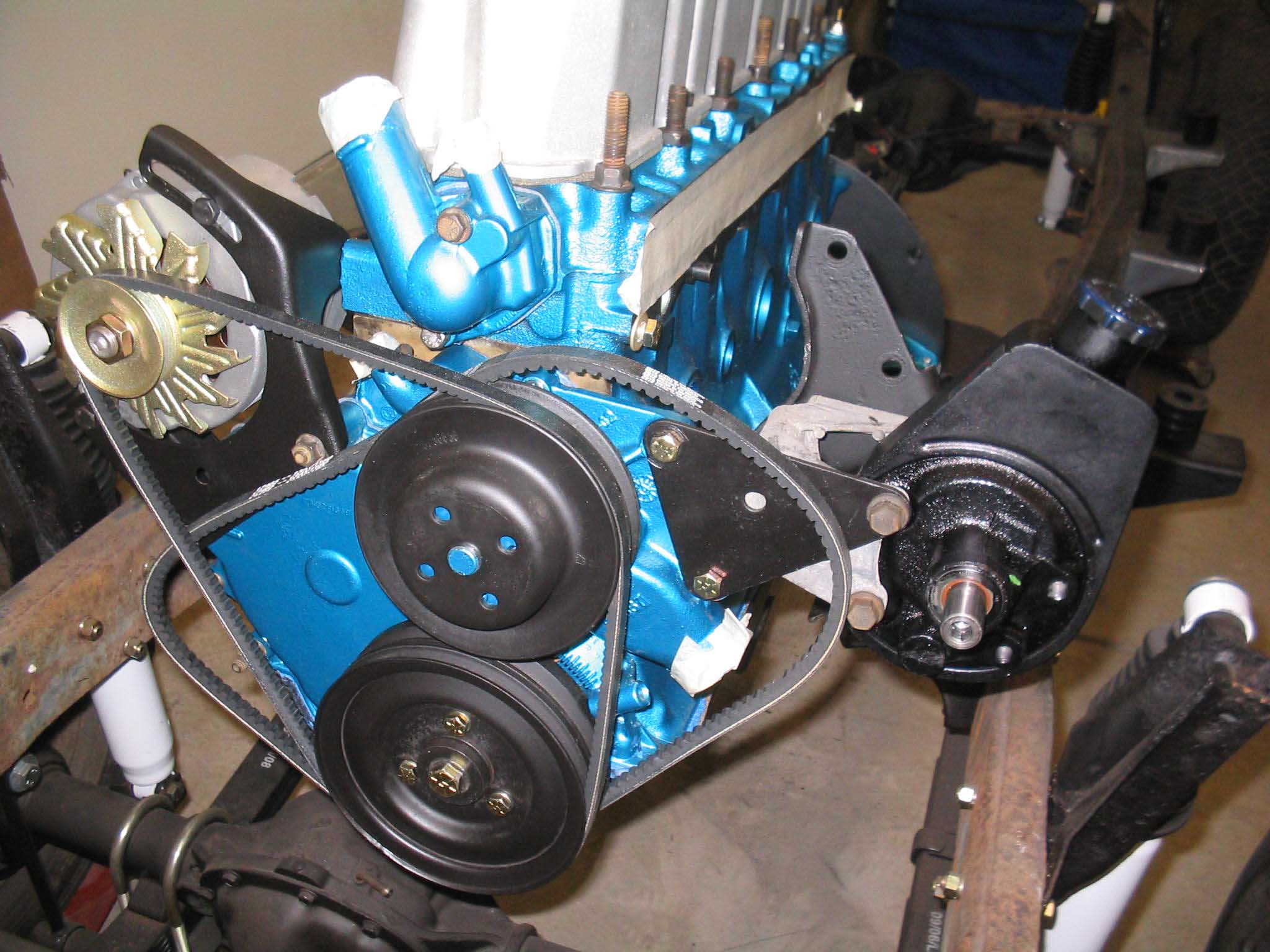 and now a whole lot to show for it. I have to paint up the bracketry for the power steering pump and I have