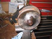 Something to note here. The flywheel is getting resurfaced, so there isn't a clutch setup in there right now.